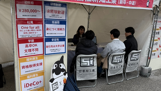 📍就活イベントに出展しました! 3/18に開催された 名古屋グランパス主催の就活イベントに参加しました⚽ あいにくの雨でしたが☔ たくさんの学生の皆さんにお越しいただき、 本当にありがとうございました! 少しでも新知工業の魅力が伝わっていたら嬉しいです😊 その後はサッカー観戦もさせていただき、見事に勝利しました🏆✨ 今後も会社見学・応募お待ちしています!